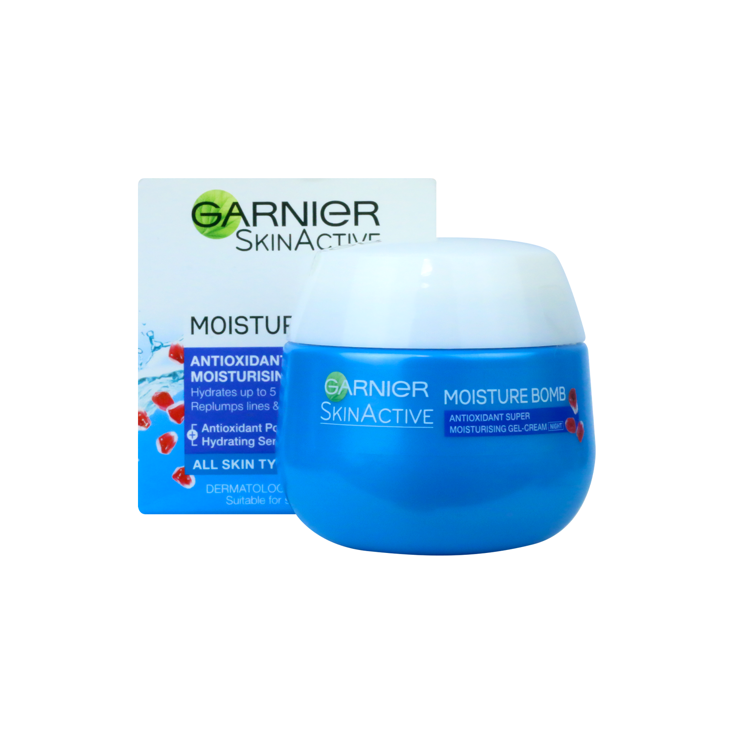 Experience the ultimate hydration boost with Garnier Moisture Bomb Moisturising Gel-Cream Night, your key to waking up to refreshed and revitalized skin. Crafted by Garnier, a trusted name in beauty and skincare, this night cream is designed to quench your skin's thirst while you sleep.