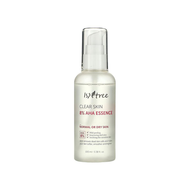 AHA Exfoliation: Isntree Clear Skin 8% AHA Essence is formulated with 8% glycolic acid, a powerful alpha hydroxy acid (AHA), known for its exfoliating prowess. It gently removes dead skin cells, unclogs pores, and improves skin texture.