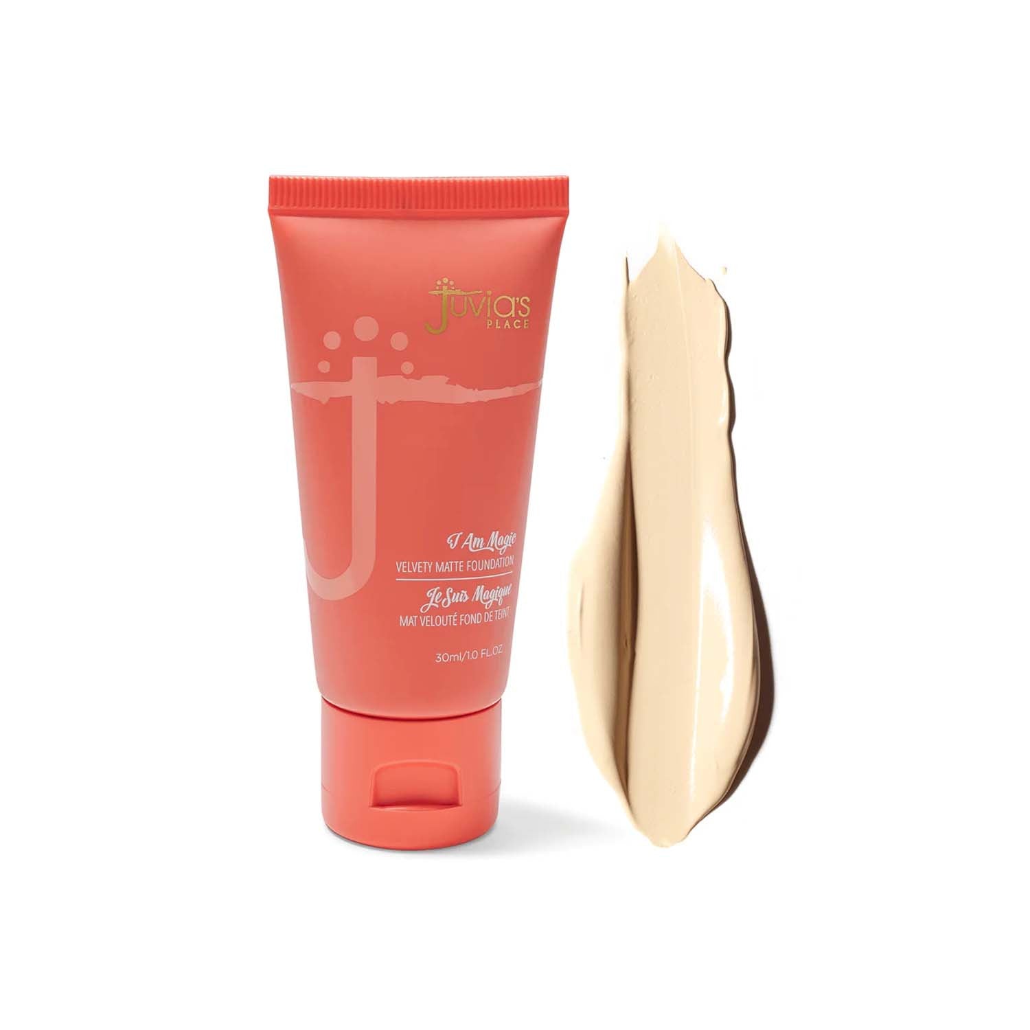Achieve a picture-perfect complexion with Juvia's I Am Magic Velvety Matte Foundation, known for its exceptional coverage that conceals imperfections, blemishes, and uneven skin tone. The advanced formula not only enhances your natural beauty but also nourishes the skin, leaving it feeling hydrated and comfortable.