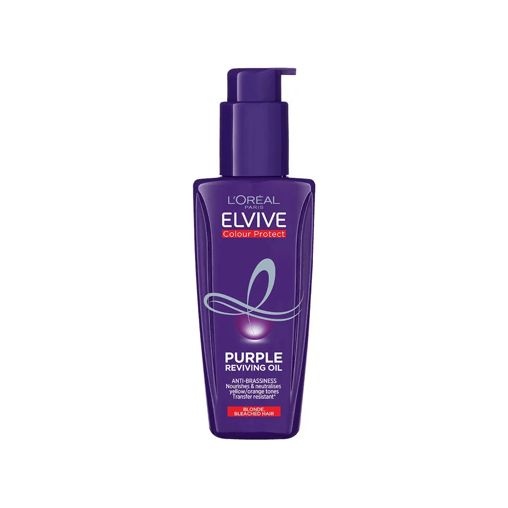 The Loreal Elvive Colour Protect Purple Reviving Oil is an essential hair care product designed to maintain and enhance the vibrancy of blonde, silver, or gray hair while neutralizing unwanted brassiness or yellow tones.