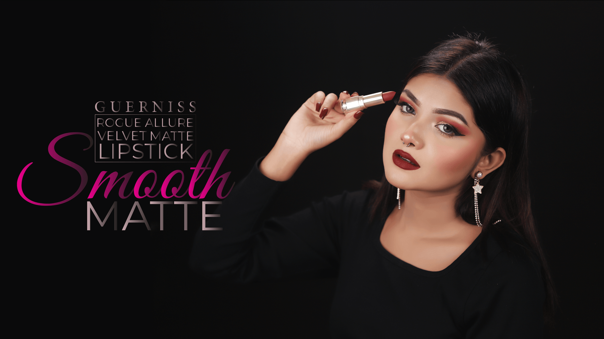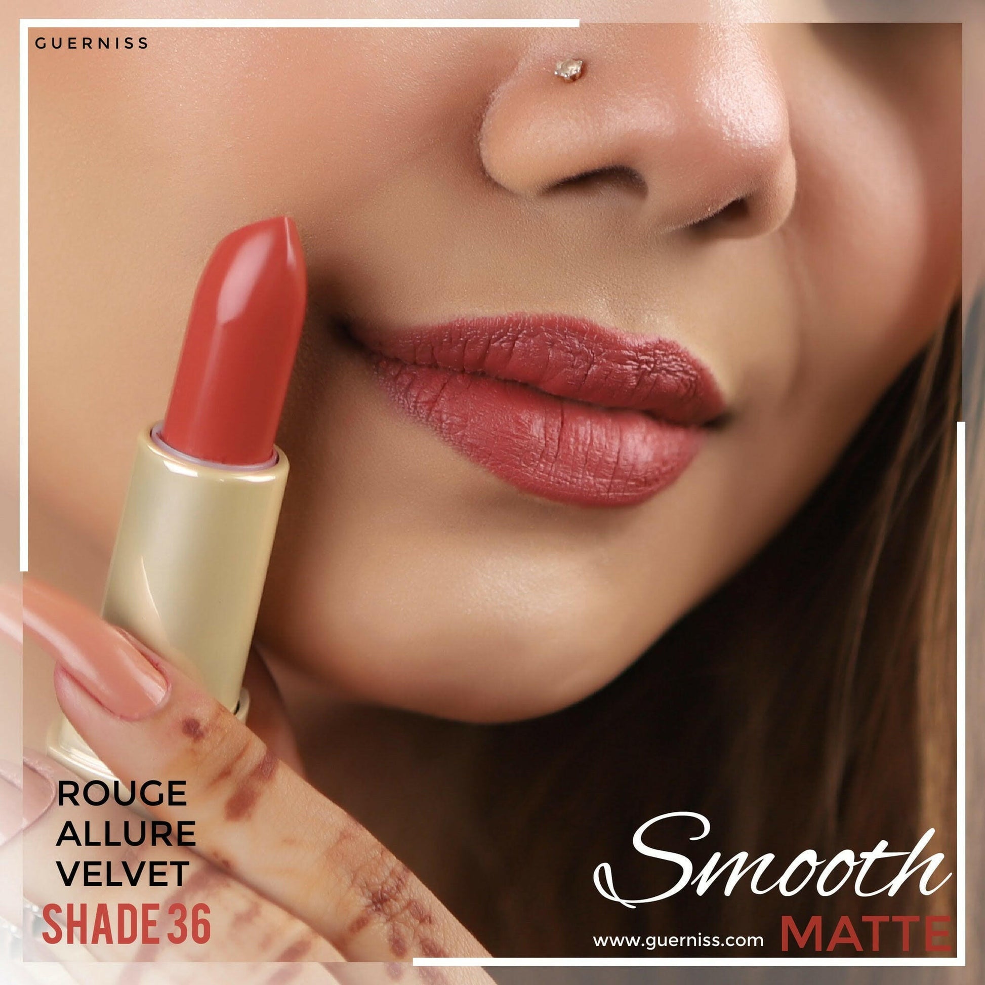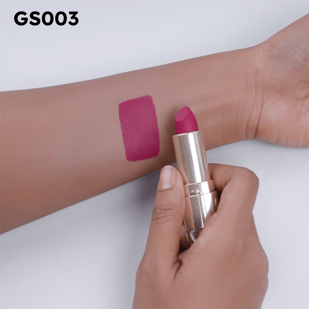 Our Guerniss Velvet Matte Lipstick delivers a satin-matte texture, which keeps your lips moisturized while providing a stunning, velvety finish.